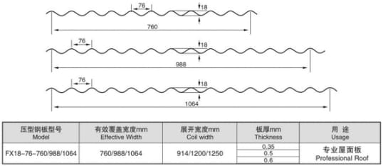 圓弧屋面瓦設備版型圖: